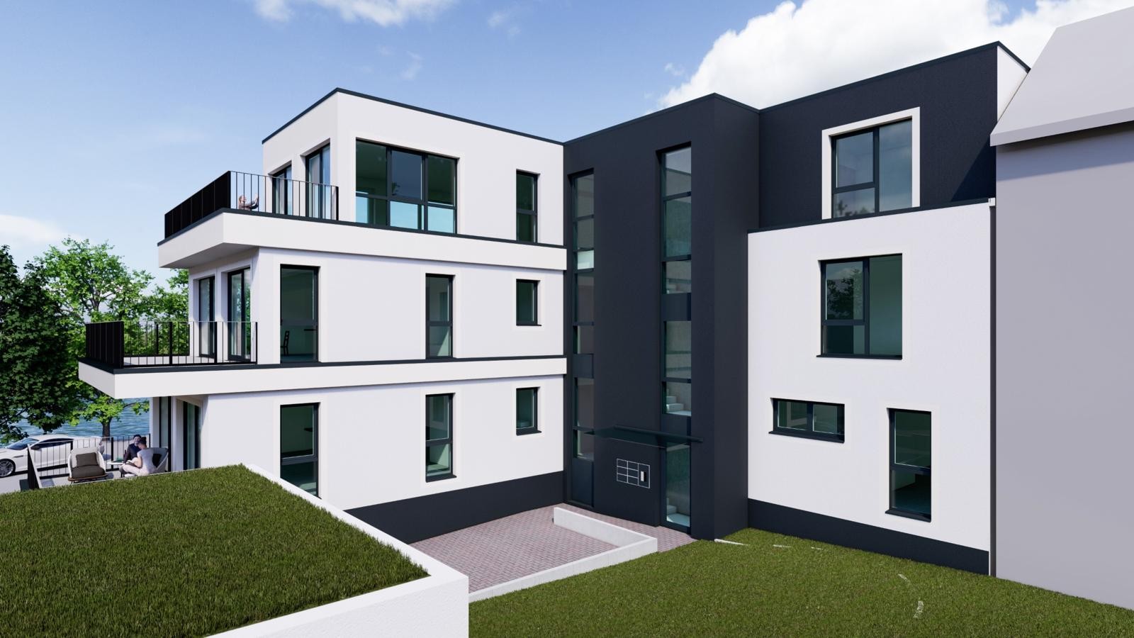 Mit ihrer klaren Linienführung, dem stilvollen Farbkontrast und der markanten, gestaffelten Fassadengliederung verkörpert diese Immobilie zeitgenössische Architektur auf hohem Niveau. Großzügige Fensterflächen sorgen für lichtdurchflutete Räume. Die durchdachte Staffelung schafft Privatsphäre auf den großen Terrassen und Loggien. Die Gesamtkomposition ist ebenso ästhetisch wie funktional - sie fügt sich souverän in die Umgebung ein und vermittelt einen hochwertigen, urbanen Lebensstil - ruhig gelegen, doch architektonisch präsent. Ein Objekt, das eine wertvolle Investition in Lebensqualität darstellt. Fünf Wohnungen zwischen ca. 100,37 m² und 169,29 m² stehen zur Verfügung, alle mit Balkon bzw. Terrasse und Blick auf die Ruhr.