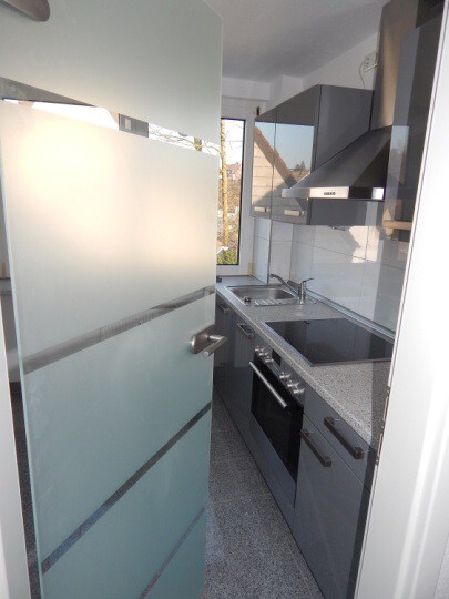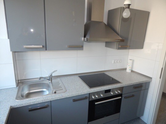 Vinyl-Design im Wohnbereich Teppichboden im Schlafzimmer Modernes innenliegendes Bad mit Eckdusche Weiße Türen Öl-Zentralheizung Kellerraum Waschküche Die vorhandene Einbauküche kann nach Absprache übernommen werden Hausgeld 310 Euro monatlich