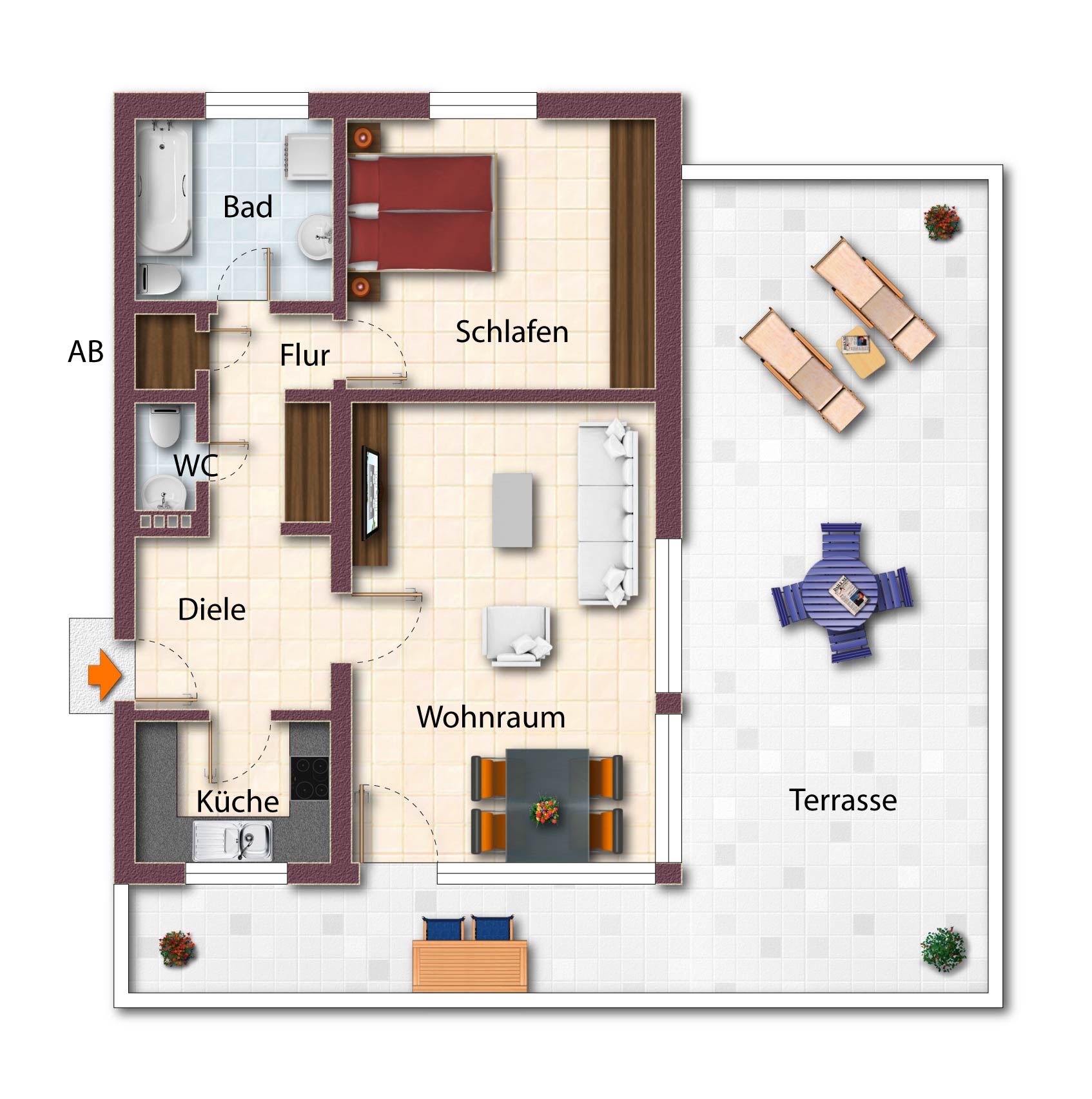 Sonnenverwöhnte Wohnung an der Ruhr mit großer Dachterrasse, Einbauküche und Stellplatz