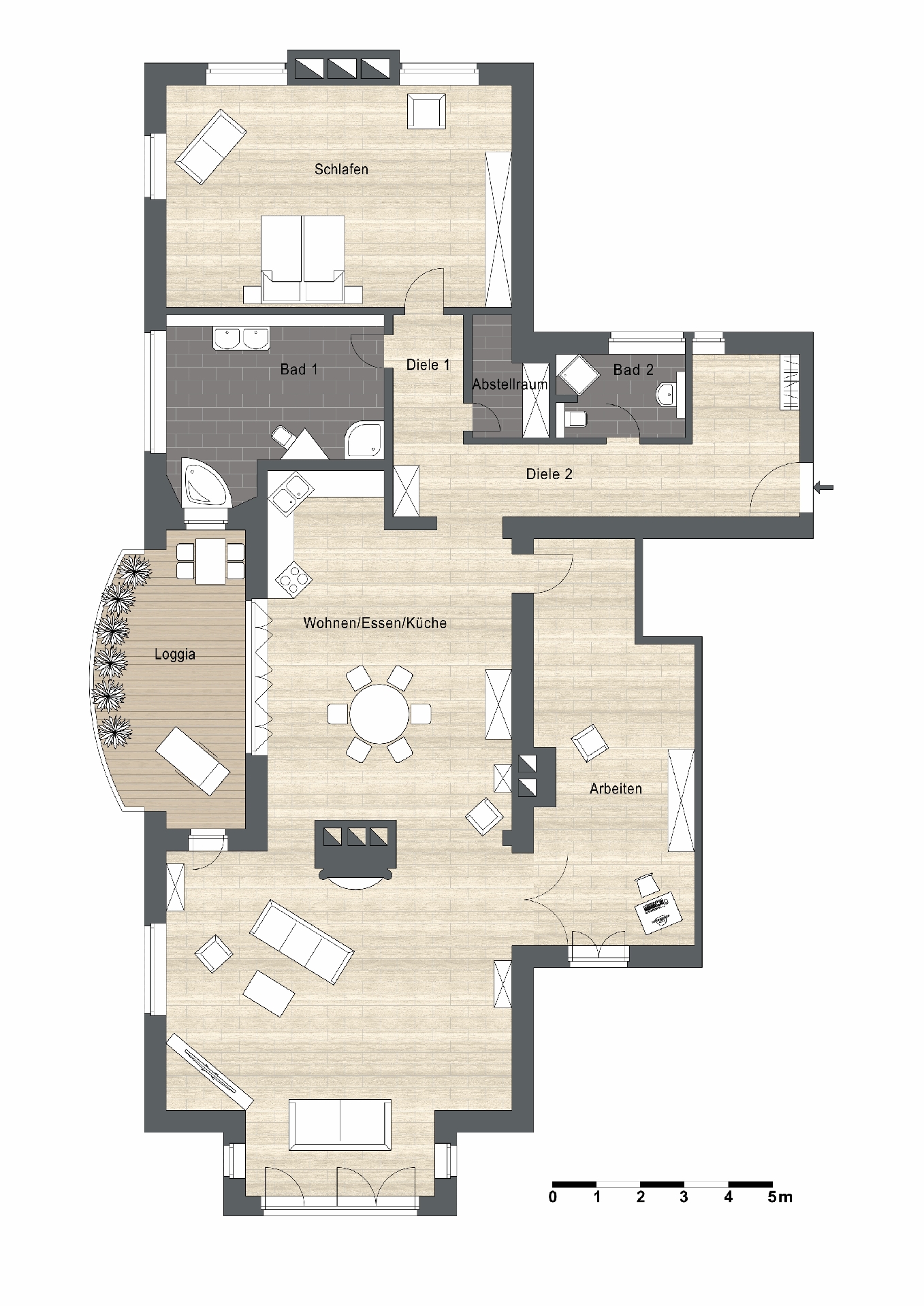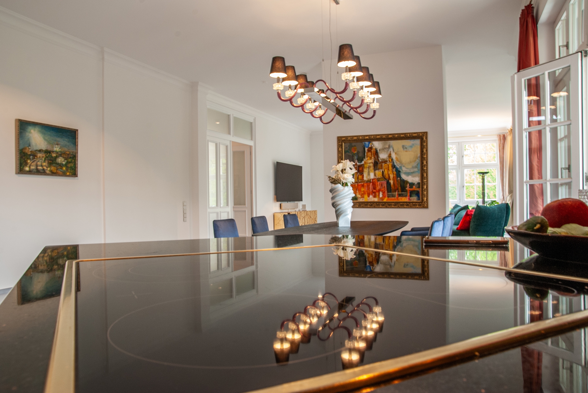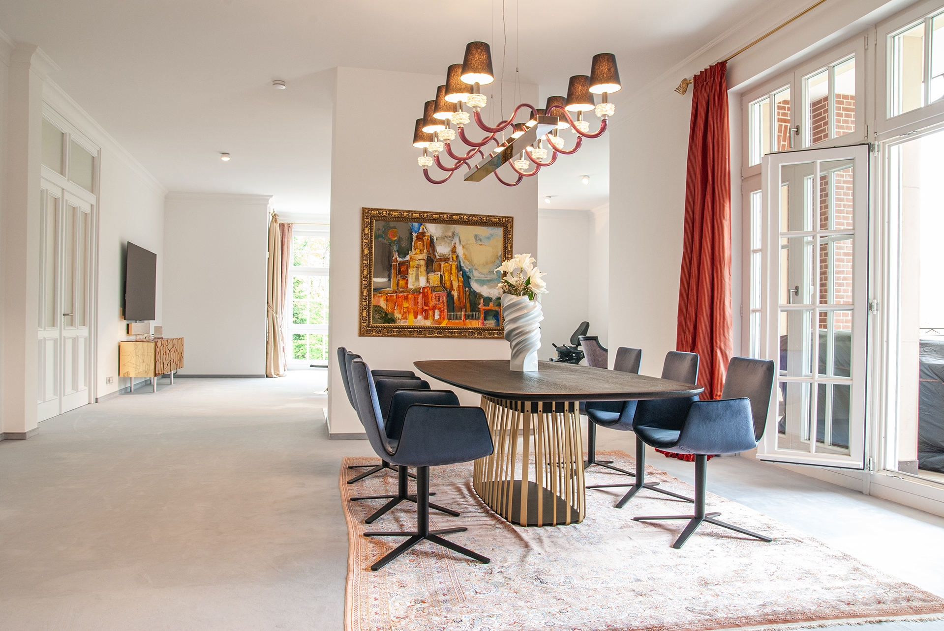 Eingebettet in einen Park mit historischen Villen, liegt die repräsentative Drei-Zimmer-Wohnung in exklusiver Lage. Die denkmalgeschützten Gebäude der individuellen Anlage, die im Jahr 1912 im Stil eines englischen Herrenhauses errichtet wurden, erfuhren 2001 eine aufwändige Sanierung. Das außergewöhnliche Anwesen umfasst zehn Wohneinheiten. Die private Zufahrt des Parkes garantiert Privatsphäre und ist darüber hinaus ein Sicherheitsaspekt. Die Wohnung befindet sich im ersten Obergeschoss und verfügt übe eine Größe von ca. 237 m² mit einem durchdachten Grundriss. Ein Aufzug verbindet alle Etagen vom Untergeschoss bis ins Dachgeschoss. Die beeindruckende Deckenhöhe von etwa 3,20 Metern verleiht den Räumen eine besondere Großzügigkeit und Eleganz. Zu den Besonderheiten der Wohnung zählt die nach Süden ausgerichtete Loggia, die in den wärmeren Monaten mit der wunderschönen Aussicht zum zentralen Rückzugsort werden kann. Hier genießen Sie Ruhe und Entspannung mit Blick auf die gepflegte Parklandschaft ein idealer Ort, um dem hektischen Alltag zu entfliehen. Die Wohnung begeistert mit einer hochwertigen und exklusiven Ausstattung, die ihr ein edles und stilvolles Erscheinungsbild verleiht. Dank des gelungenen Schnitts eignet sich die Immobilie sowohl für Paare als auch für Familien hervorragend. Auch das Wohnen und Arbeiten lässt sich hier auf stilvolle Weise vereinen. Drei große Einzelstellplätze in der hauseigenen Tiefgarage, können erworben werden, runden dieses Angebot ab. Die Wohnung erfüllt höchste Ansprüche an exklusives Wohnen und überzeugt zugleich durch ihre hervorragende Anbindung an Essen und Düsseldorf.