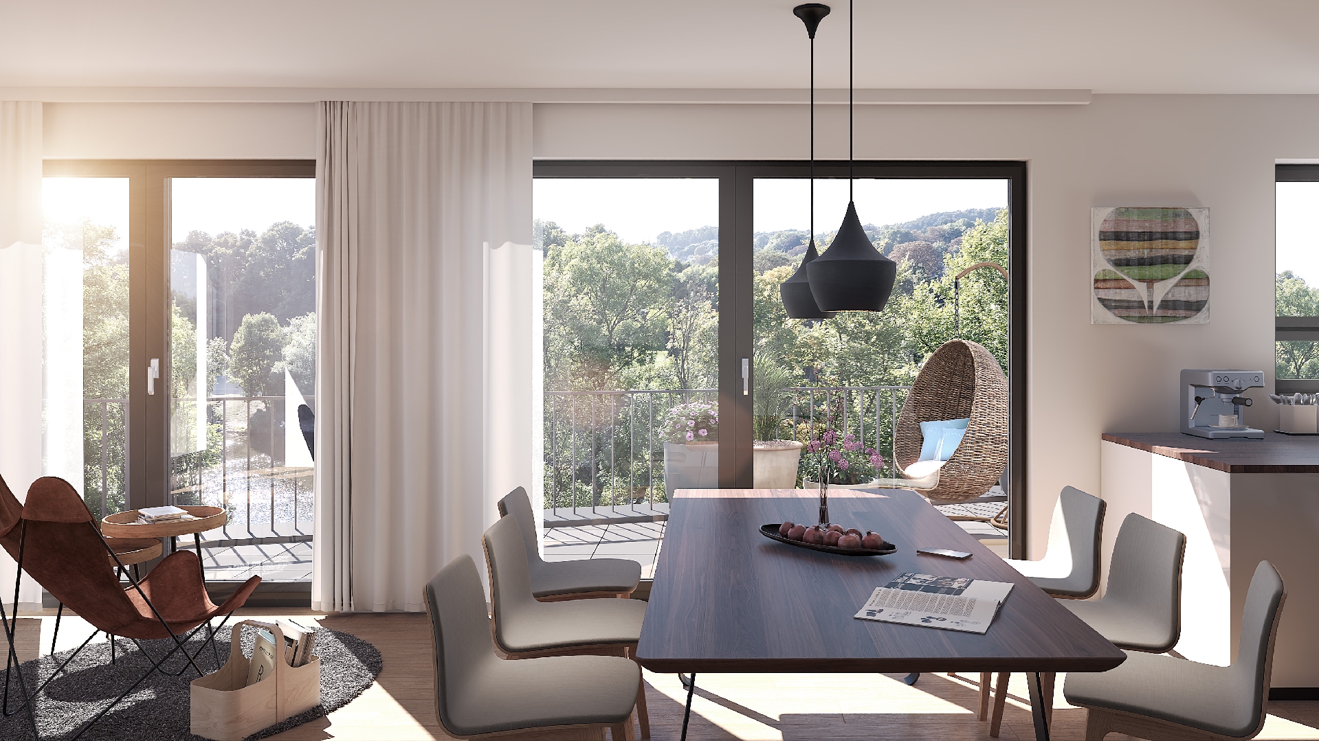 Mit ihrer klaren Linienführung, dem stilvollen Farbkontrast und der markanten, gestaffelten Fassadengliederung verkörpert diese Immobilie zeitgenössische Architektur auf hohem Niveau. Großzügige Fensterflächen sorgen für lichtdurchflutete Räume. Die durchdachte Staffelung schafft Privatsphäre auf den großen Terrassen und Loggien. Die Gesamtkomposition ist ebenso ästhetisch wie funktional - sie fügt sich souverän in die Umgebung ein und vermittelt einen hochwertigen, urbanen Lebensstil - ruhig gelegen, doch architektonisch präsent. Ein Objekt, das eine wertvolle Investition in Lebensqualität darstellt. Fünf Wohnungen zwischen ca. 100,37 m² und 169,29 m² stehen zur Verfügung, alle mit Balkon bzw. Terrasse und Blick auf die Ruhr.